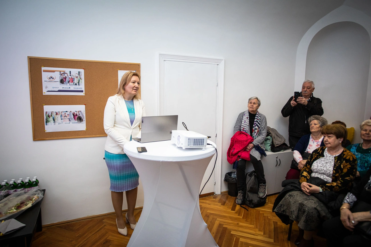 A vármegyei közgyűlés elnökének köszöntője után Filep Réka a BORA 94 Nonprofit Kft. vezető projektmenedzsere vetített előadással mutatta be a határokon átívelő projektet, melynek másik intézménye Kassán működik. „Mindkét határmenti megyében tendencia, hogy a lakosság öregszik, az emberek egyre tovább élnek, és szerettük volna a térségben élő szépkorúak nyugdíjas éveit minél szebbé tenni. Olyan programokat, lehetőségeket biztosítani számukra, amelyek által az idős éveiket hasznosan tudják eltölteni” – osztotta meg a koncepciót Filep Réka. Vázolta, beszerzésre kerültek különböző fitnesz eszközök is, amelyeket szabadon használhatnak, a hét két napján, kedden és csütörtökön a nyitvatartási időben. Valamint, önkéntesek segítségével számos programot szerveznek, az előadásoktól, a kreatív művészeti foglalkozásokon át a jógáig. Az idősek nagyon szívesen részt vesznek ezeken, nem ritka a túljelentkezés is egyes programokra.
