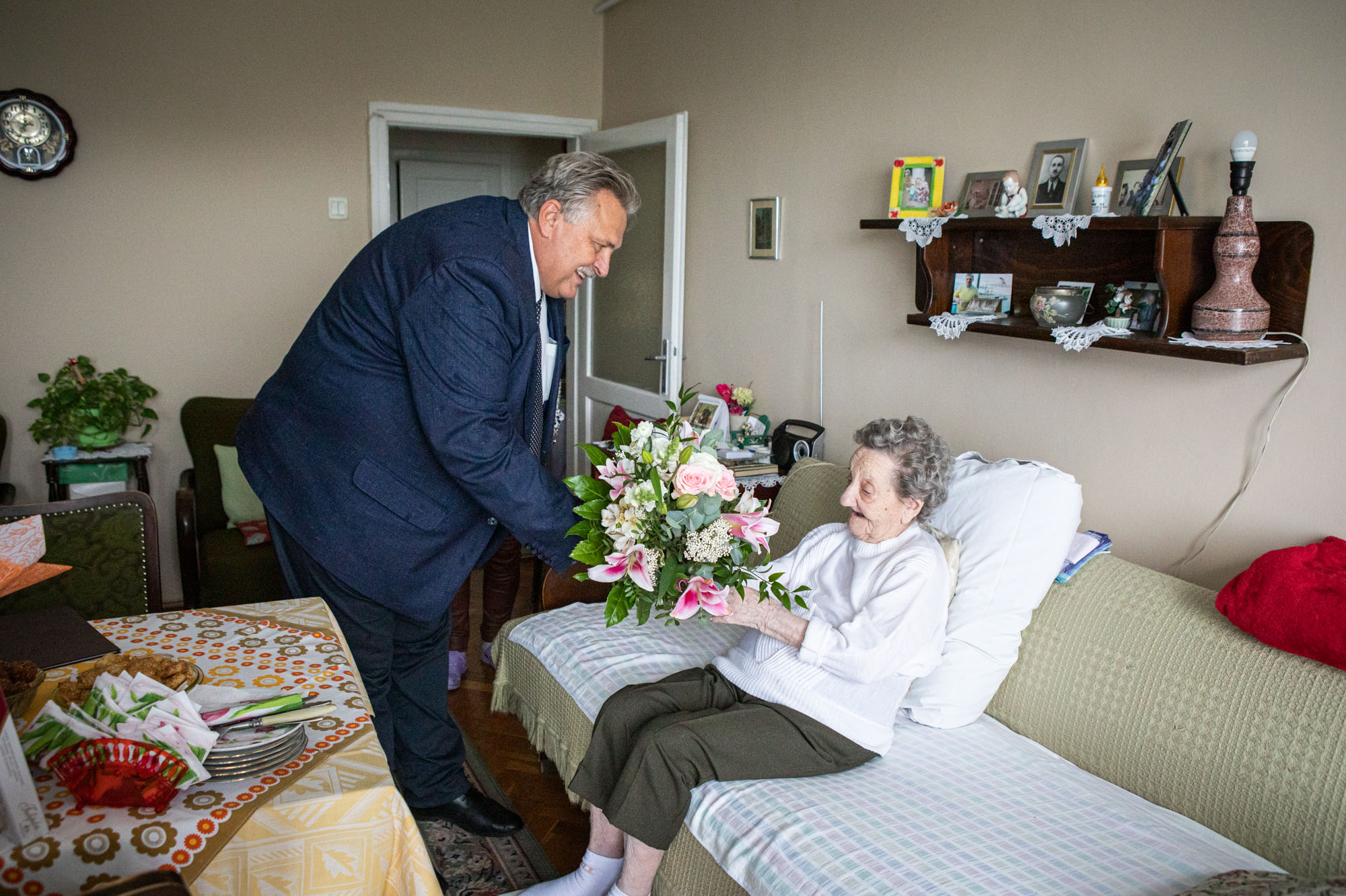 Erzsike néni százévesen sem panaszkodhat egészségi állapotára, gyógyszerek helyett inkább vitaminokat szed, s mint mondja: „tűrhetően” érzi magát. Mikor Veres Pál menni készült, mindenki meglepetésére Erzsike néni felállt, és egészen a bejárati ajtóig kísérte a polgármestert.