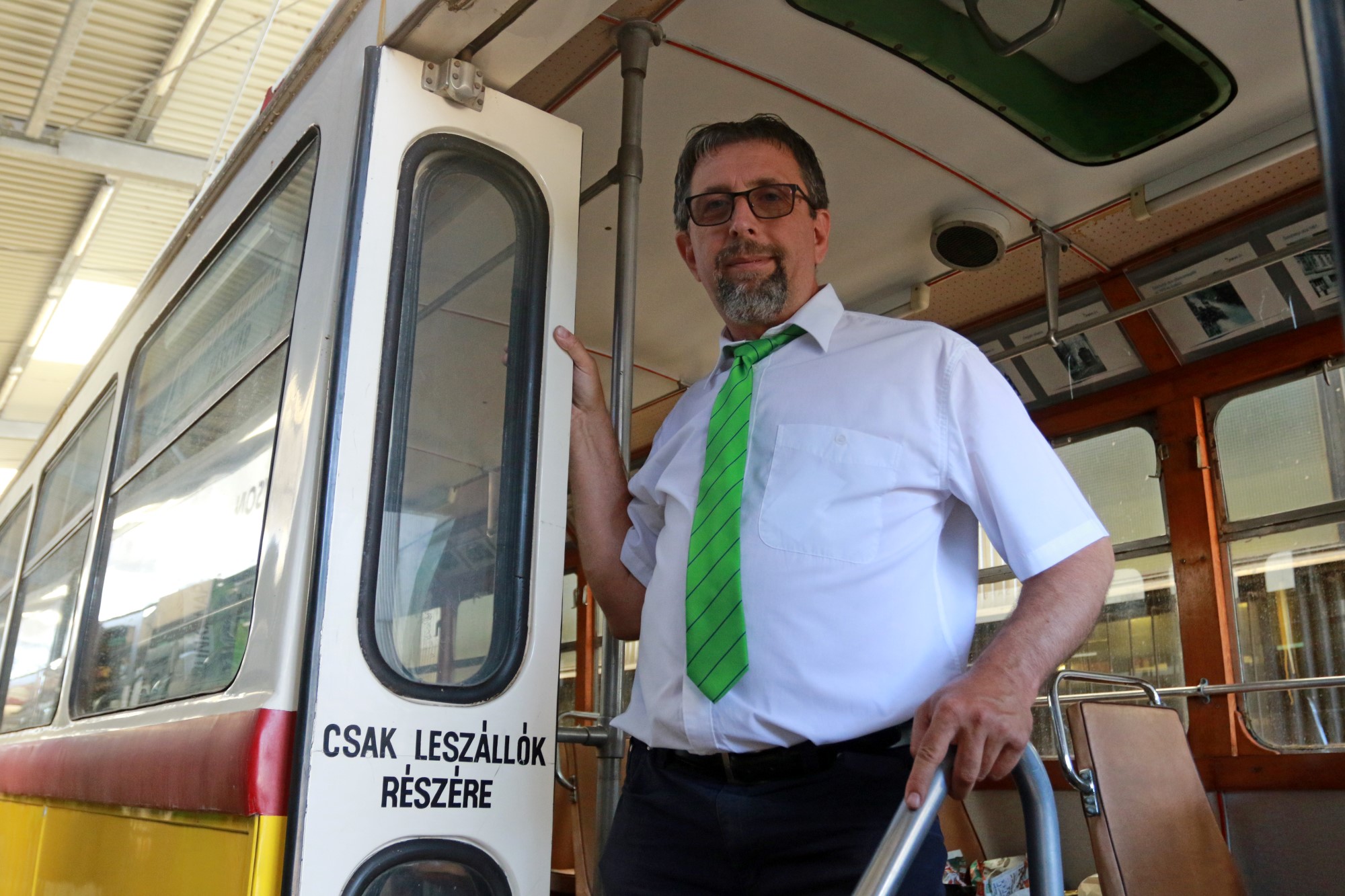 Csupán a kamera és a fényképezőgép kedvéért ült be ottjártunkkor a vezetőfülkébe Simon Gábor, aki harminckilenc évig dolgozott a helyi közlekedési vállalatnál. Az MVK-s dolgozó alapvető álma az volt, hogy autóbuszt vezessen, de végül olyannyira megszerette a síneket, hogy a villamos mellett maradt. Az évek során persze aztán az autóbuszra is engedélyt szerzett, így ha kellett, vezetett villamost és autóbuszt is, mindemellett a szerelőműhelyben is otthon érezte magát.