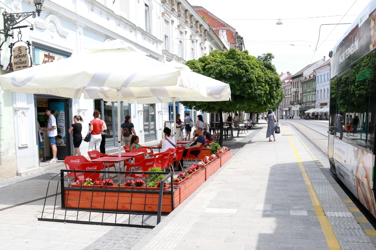 - A villamos- és gyalogosközlekedés, valamint az üzleteket érintő áruszállítás miatt korlátozottak a lehetőségeink a Széchenyi utcán, nem tudjuk úgy zöldíteni, olyan színesre varázsolni, mint amilyen elvárható lenne. Ezért kértük meg a vendéglátóhelyek üzemeltetőit, hogy a kialakított teraszokat igyekezzenek minél inkább zöldíteni – nyilatkozta Czifrusz Natália. A város főkertésze hozzátette, ha a vendéglátóhelyek igénylik, szakmai tanácsot tudnak nyújtani a virágládák, illetve növények kapcsán egyaránt.