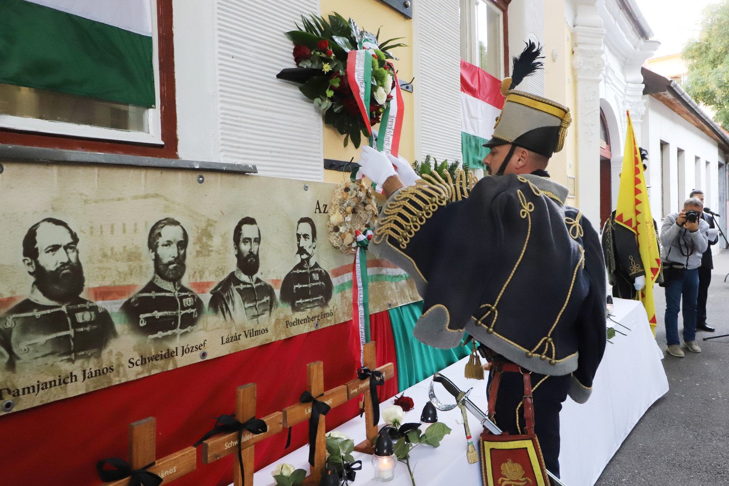 - A változó esélyek katasztrófába torkolltak, a magyarok sorsa a szabadságharc leverése után megpecsételődött: vezéralakjainak egy része a hazán kívül keresett menedéket, másik részük fogságba esett, és hosszú sora nyílt meg a vértanúságnak. A túlerő legyőzte a szabadság ügyét, és ahhoz, hogy elkerüljék a további vérontást, 1949 augusztus 13-án Görgei Artúr egész hadseregével megadta magát az oroszoknak. Önként és feltétel nélkül nyújtották a magyarok sorsát Isten kezébe – öntötte szavakba a nemzeti gyászérzetet Tiborc-Kovács Kinga, aki emlékeztetett, nem szabad elfelejteni azoknak az áldozatát, akiknek „az áhított szabadság helyett halál jutott”.