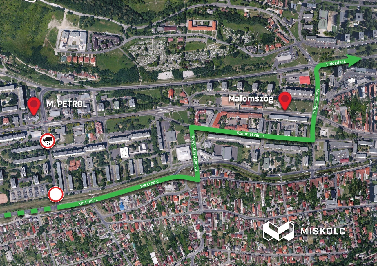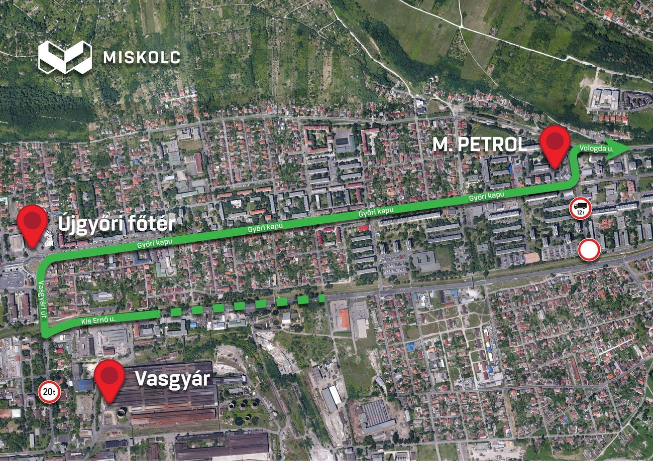 Felhívjuk figyelmüket, hogy a Kiss Ernő utcáról a Vasgyári úton át a Csermőkei út (Vargahegy) irányába – közúti hídra érvényben lévő korlátozás miatt – 20 t legnagyobb össztömeget meghaladó tehergépjárművel behajtani tilos!