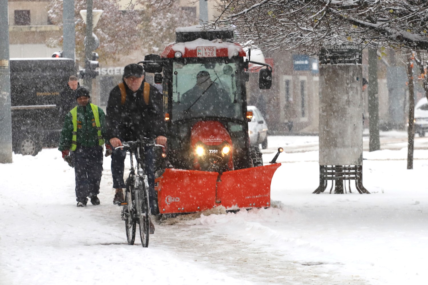 A buszútvonalak síktalanítása már a reggeli órákban megtörtént, most a meredekebb mellékutcák vannak soron. A munkálatokat három hótoló-sószóró géppel, valamint kézi erővel végzik.