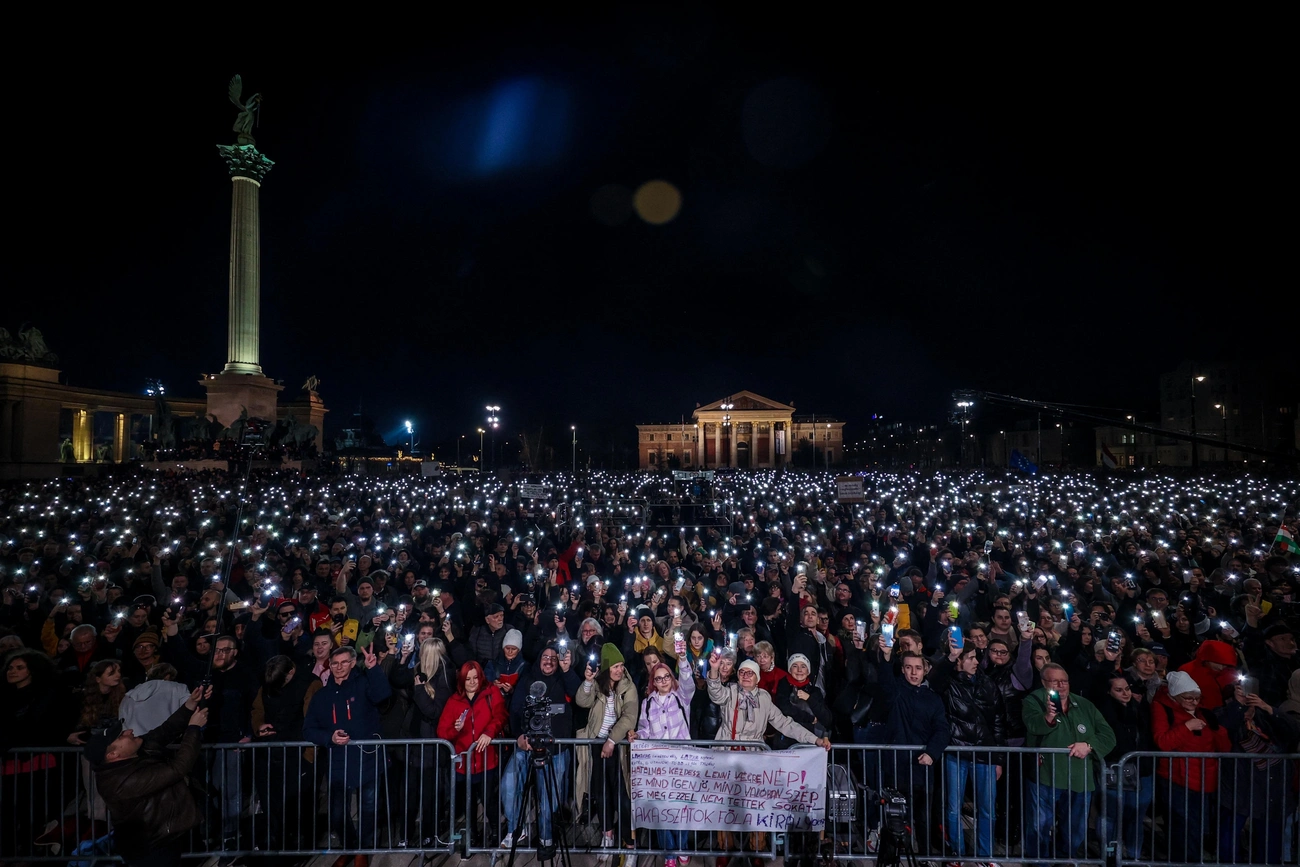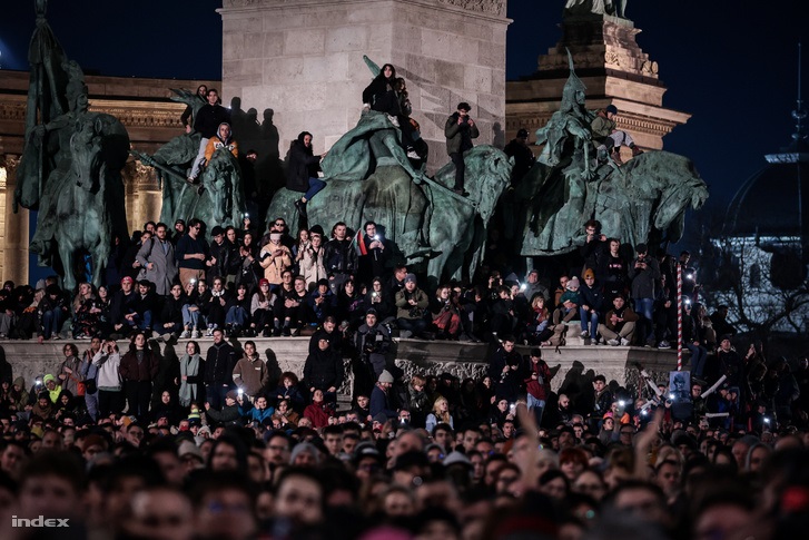 Gulyás Márton a demonstráció házigazdájaként azzal kezdte, a Holdon még nem járt, ezért nem tudja, onnan mekkorának látszik a tömeg. De megtöltötték a teret, sőt, a környező utcákat is.