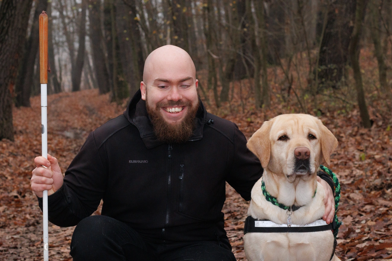 A videóban szereplő Balogh Ádám pszichológusként segít az alapítvány látássérült klienseinek, Vida Zoltán pedig informatikai szakemberként dolgozik a szervezetnél. Mindkettejük hű társát a Baráthegyi Vakvezető Kutya Iskolában képezték.