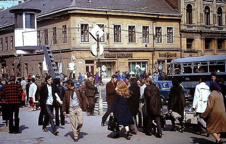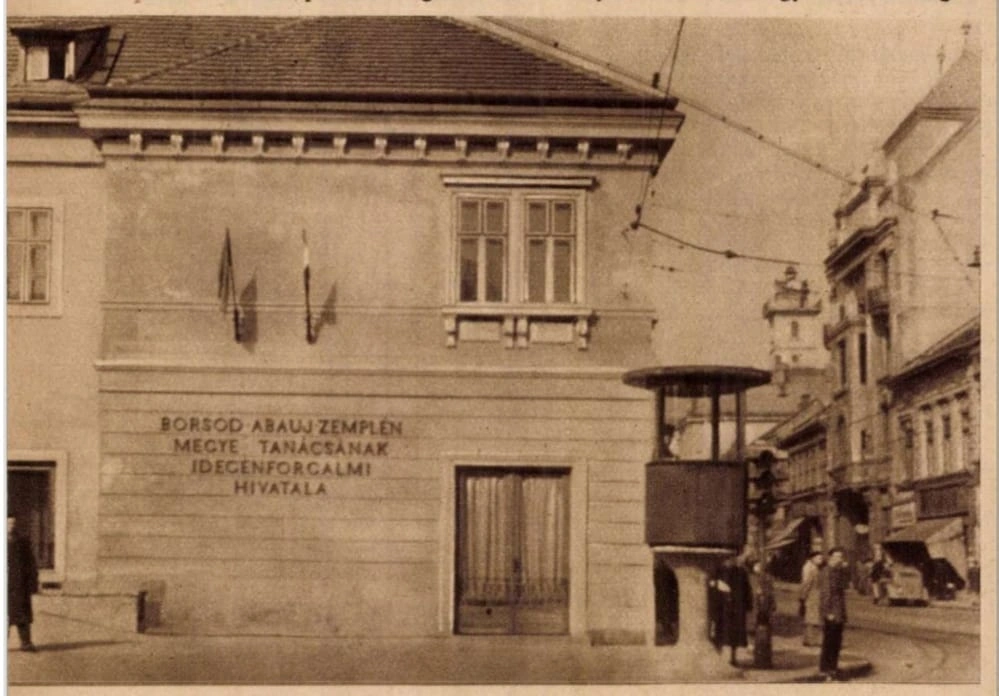 A Széchenyi utca 42–44. szám alatti nevezetes Megay-cukrászda épületét 1955-ben lebontották, és a kiszélesedő térség lehetővé tette, hogy a közlekedésirányító lámpák vezérlését oda helyezzék át. A sarkon – feltehetően fővárosi példára – egy gombaszerű vasbeton építményt telepítettek, amin egy henger alakú, üvegezett szekrényt alakítottak ki. A rendőr vaslétrán mászott fel a körülbelül 170–180 centiméter magas állványon elhelyezett dobozba, és kézi irányítással működtette a rendőrlámpákat.