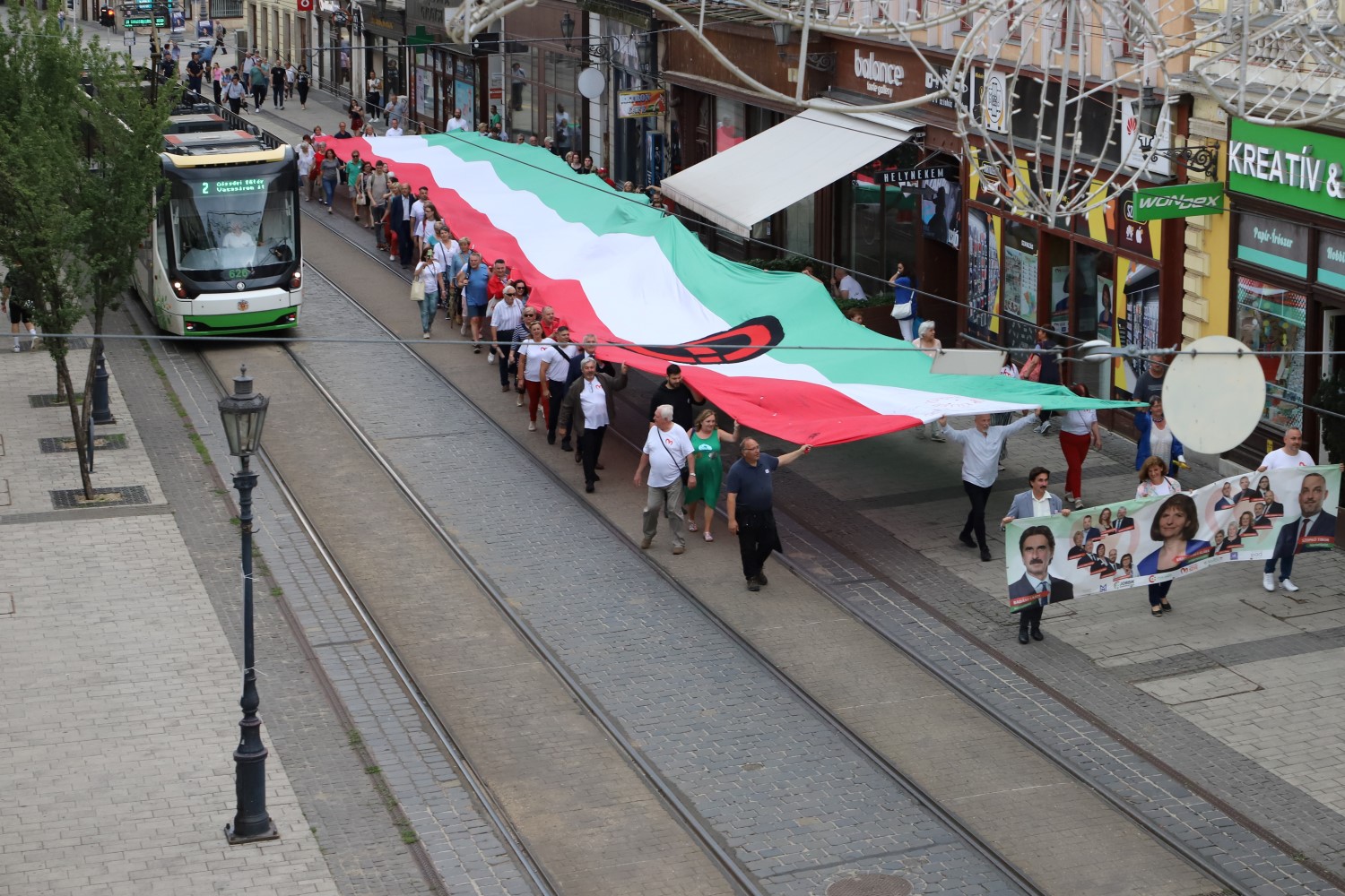 A Centrumból a városházára! – ezzel a címmel tartott kampányzárót pénteken a Függetlenek SZIVE, a Jobbik-Konzervatívok, a Momentum, a Civil Bázis, a Helyi Civilek Szövetsége, a Mindenki Magyarországa Mozgalom, a MARÉG és a Padtársak szövetsége. Az áruház elé három órára meghirdetett gyülekezőt követően a tömeg négy óra körül indult el a főutca nyugati irányába. A kampányzáró felvonuláson az ország leghosszabb, 48 méteres, nemzeti színű zászlóját húzták ki a résztvevők, amit a Civil Bázis elnöke, Horgas Péter hozott magával Budapestről.