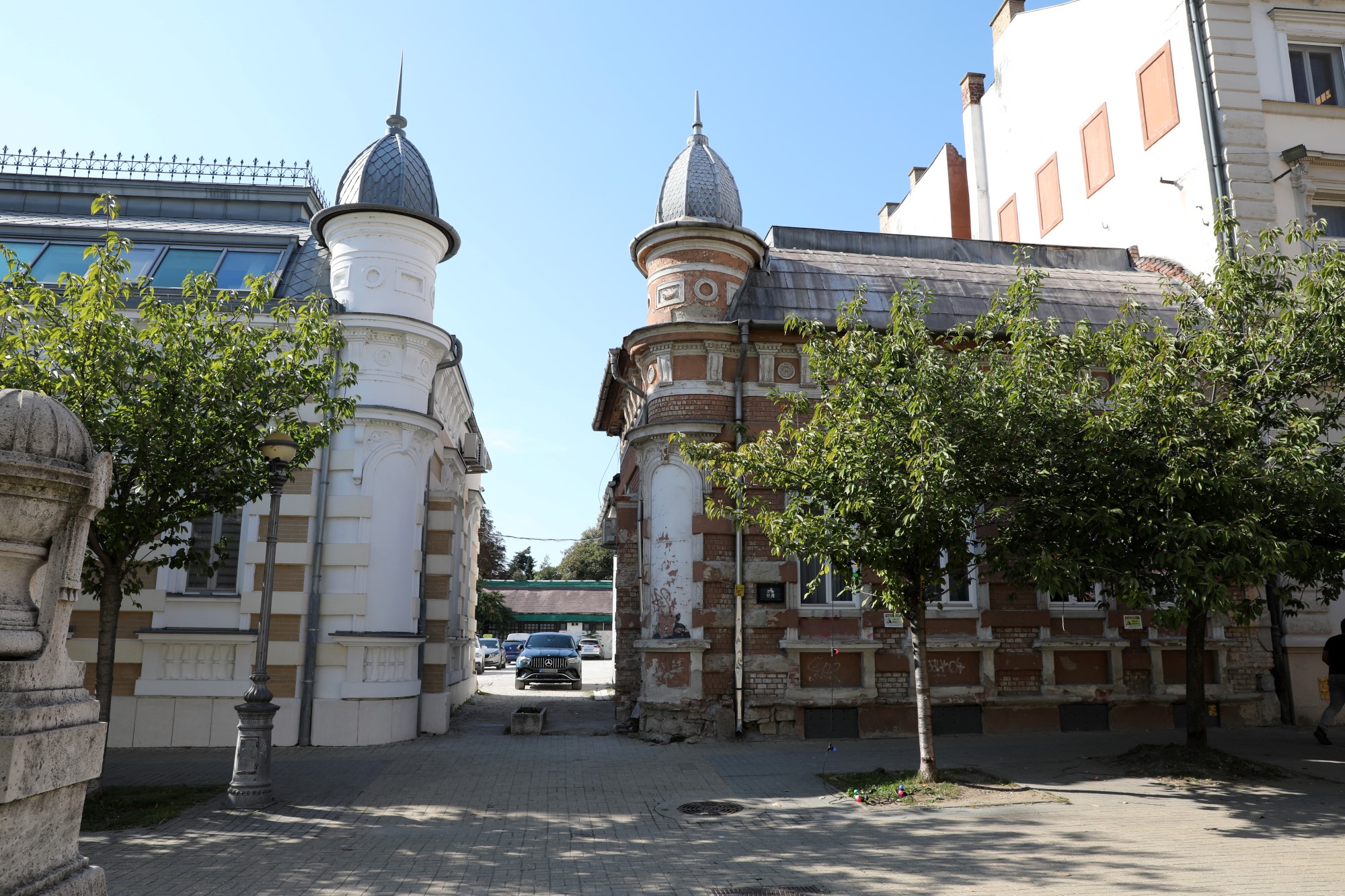 – A külső burkolatok megformálásával kapja meg az épület azokat a klasszicizáló stílusjegyeket, amelyekkel igazodik a térhez tartozó többi házhoz. Az objektum fő burkolata a káderezett travertin mészkő, amely egészen felfut a legfelső szintig – ez a korábban már idézett, a gyógyászati központ által megosztott leírásból derül ki.