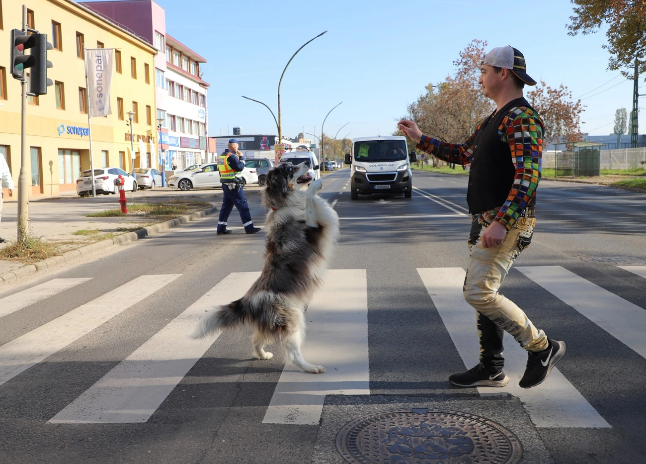 - Az év folyamán még sok meglepő és látványos kampányunk lesz, amikre az emberek nem számítanak. Azt szeretnénk elérni, hogy minél többen felkapják a fejüket és észrevegyék, hogy milyen fontos a biztonságos átkelés a gyalogátkelőhelyeken. Ennek érdekében igyekszünk kitalálni meglepő, meghökkentő megoldásokat, ilyen ez a mai is, amikor a cirkusz állataival, két kutyával és egy négy fős láma családdal készítünk egy kisfilmet – ismertette az őrnagy.