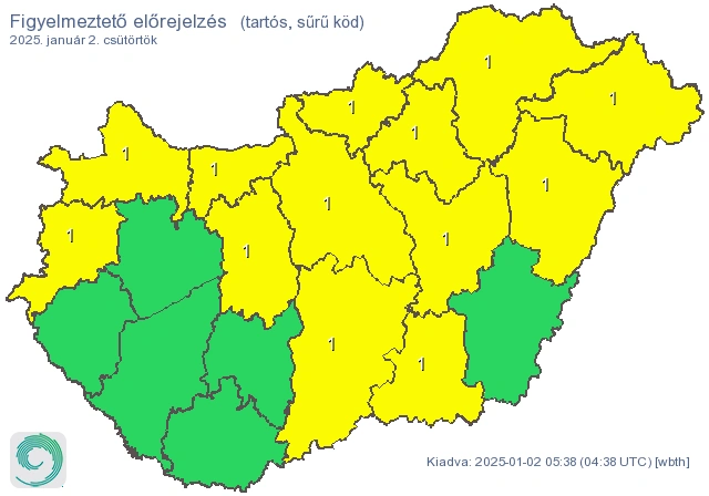 A meteorológiai szolgálat ennek megfelelően – ahogy az a fenti térképen is látható – több vármegyére, köztük Borsodra is elsőfokú figyelmeztetést adott ki a tartós, sűrű köd miatt.
