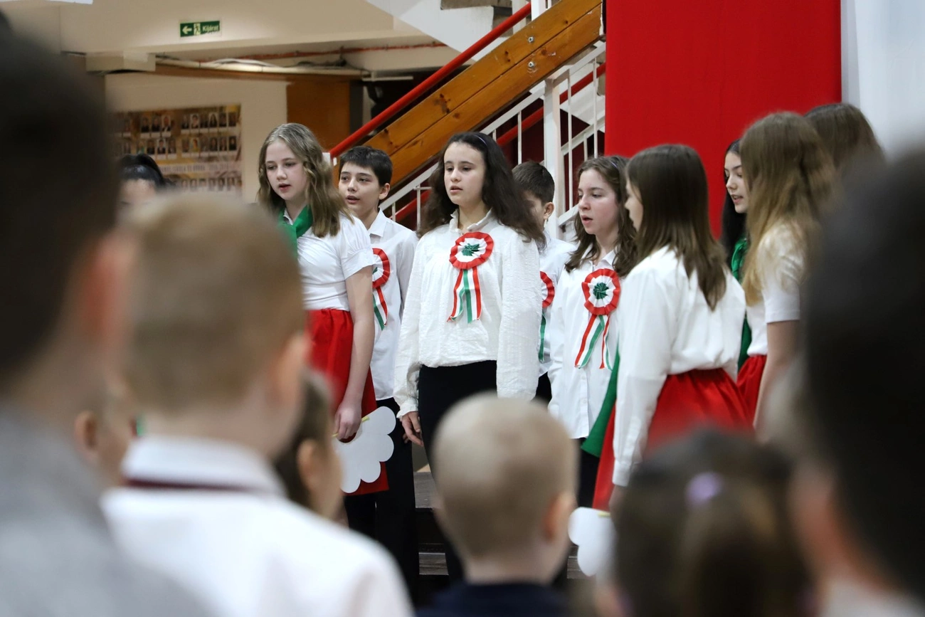 Az iskola hatodik évfolyamos diákjai adtak műsort, ahol megidézték a márciusi ifjakat, a Pilvax kávéházban történteket, a Nemzeti Dal születését, a 12 pont megírását és kinyomtatását. Hollósy András alpolgármester köszöntőjében arról beszélt mindannyian a forradalom és a szabadságharc örökösei vagyunk. Ezt a szellemiséget kell, hogy tovább vigyük.