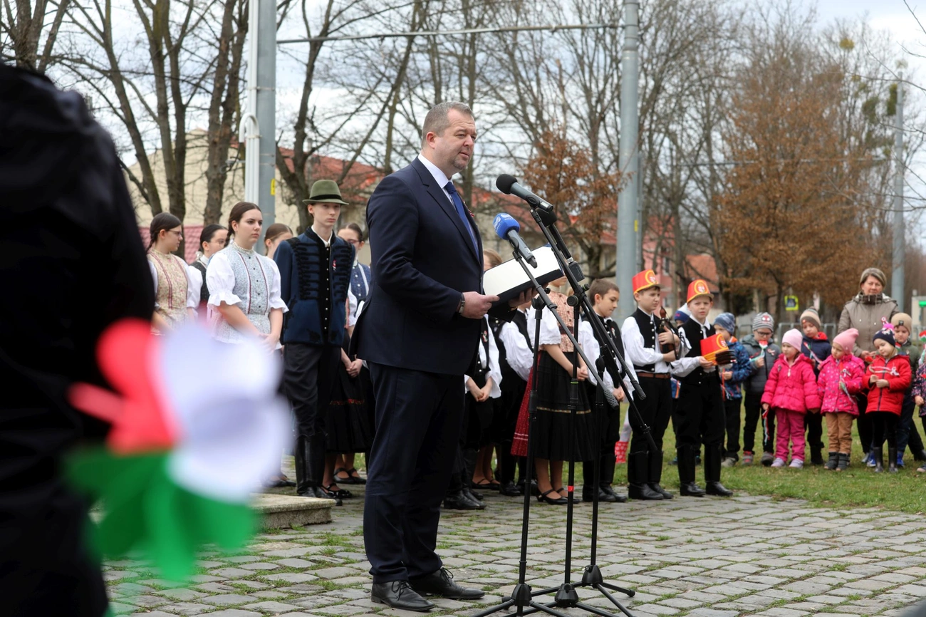 A hagyományoknak megfelelően Miskolc alpolgármestere azt követően kezdte meg ünnepi beszédét, hogy a Diósgyőri Gimnázium tanulói a Himnusz dallamaira felvonták a nemzeti lobogót. Hollósy András kiemelte: a magyarság számára különösen fontos március 15-e, amely nem csupán dátum, hanem rámutat arra is, hogy Petőfi és kortársai hajlandók voltak tenni egy szabadabb és igazságosabb országért, azokért az értékekért – szögezte le a városvezető –, melyek meghatározó értékei a mai Magyarországnak is.