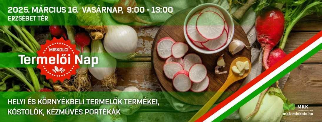 A soron következő Miskolci Termelői Napot március 16-án vasárnap, 9 és 13 óra között tartják az Erzsébet Téren. A vásáron jellemzően őstermelők és házi manufaktúrák árusítják majd termékeiket. A paletta széles skálán mozog, a lekvároktól, szörpöktől kezdve a kézműves sajtokon át egészen a textil termékekig minden megtalálható a standokon.