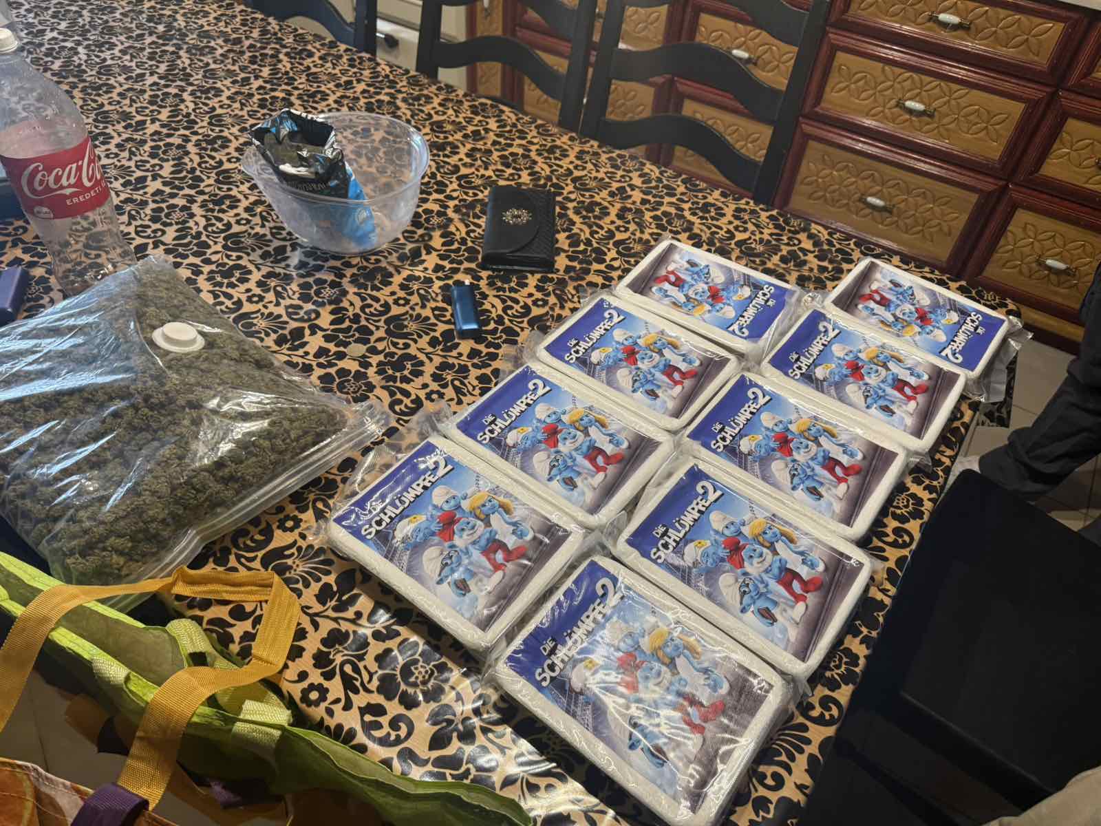 Ezen túlmenően az ingatlanban kokain, ecstasy tabletták, ismeretlen gombaszármazék, fogyasztáshoz használt eszközök, valamint több, mint egymillió forint készpénz is volt. A nő felfedte továbbá belvárosi irodájának helyszínét, ahol egyebek mellett közel ezer darab ecstasy tabletta és LSD bélyegek voltak. A férfi kisteherautójában pedig további 8 kilogramm marihuána gyanús anyagot, míg lakóhelyén 1 kilogramm kábítószert és termesztéshez használt eszközöket találtak a nyomozó hatóság tagjai.