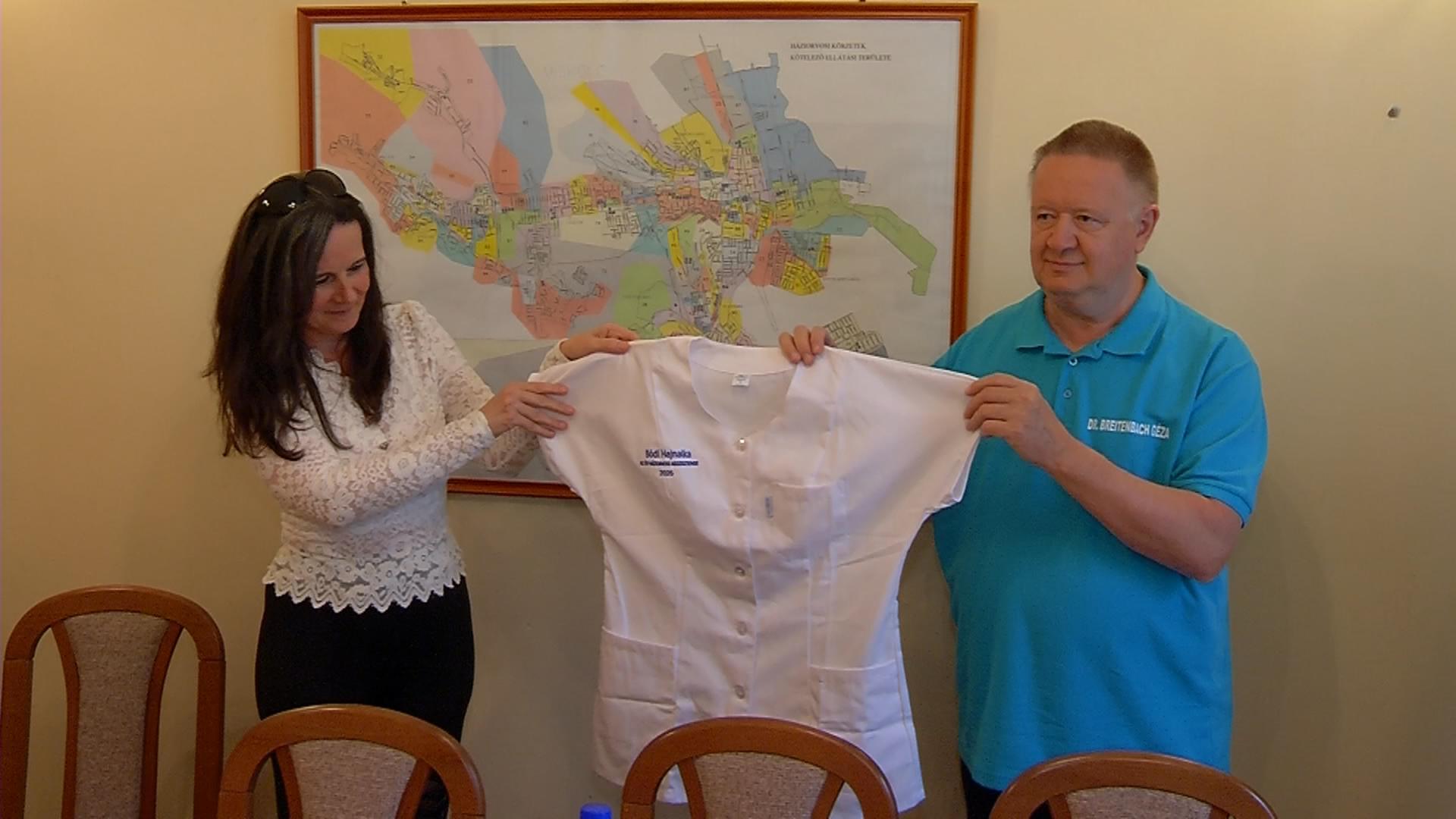 „Az év háziorvosi asszisztense – 2025” díjazottja Bódi Hajnalka lett, akit egy, ezt a tényt rávarrt hímzéssel is hirdető köpennyel leptek meg.