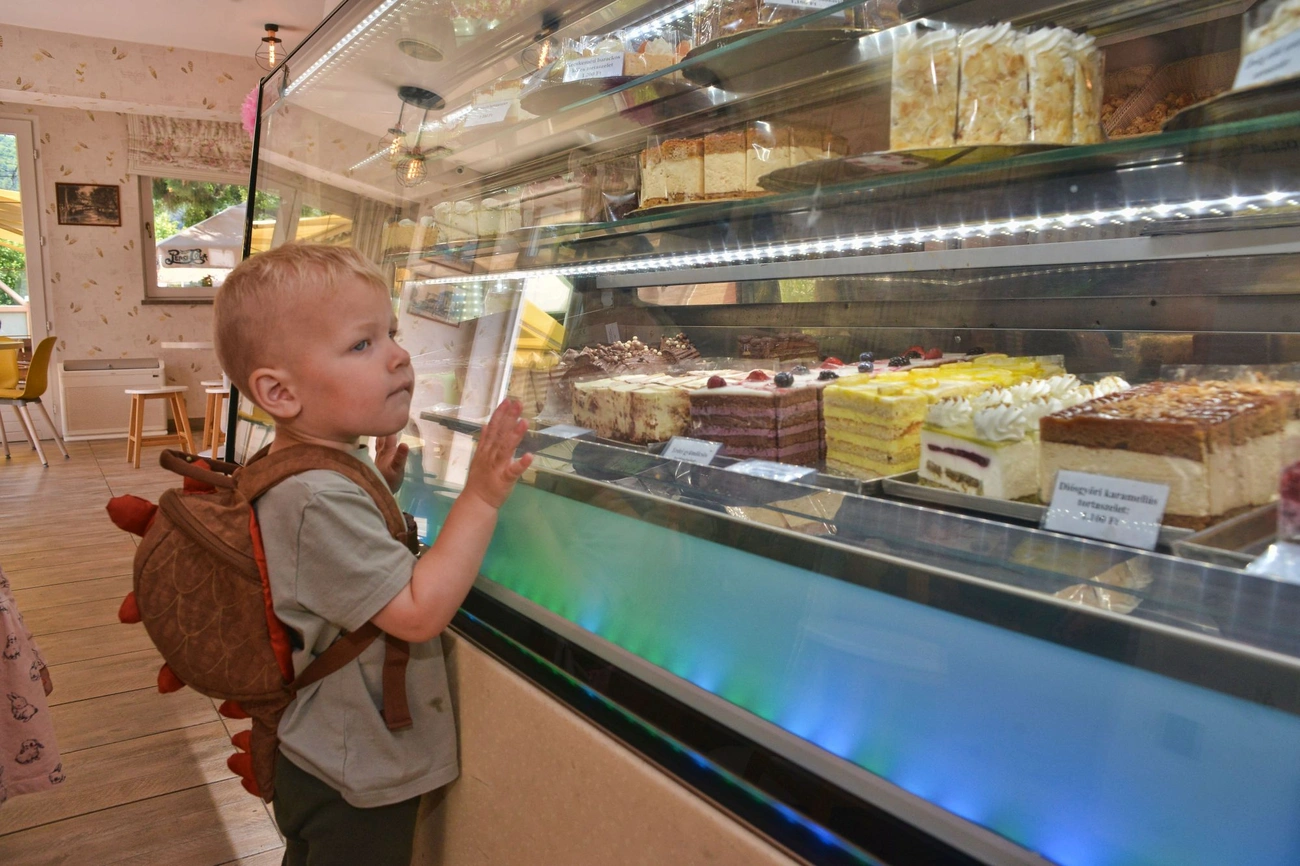 A kezdetekben még egy kis ablakon nyújtották ki a tölcsért a vevőnek, később pedig elnyerte mai formáját a cukrászda.