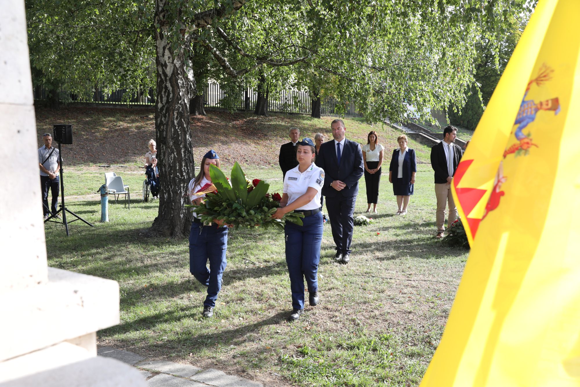 A megemlékezés végén Miskolc önkormányzata nevében Hollósy András alpolgármester, valamint pártok, civil szervezetek, egyesületek képviselői helyeztek el koszorúkat az emlékműnél.