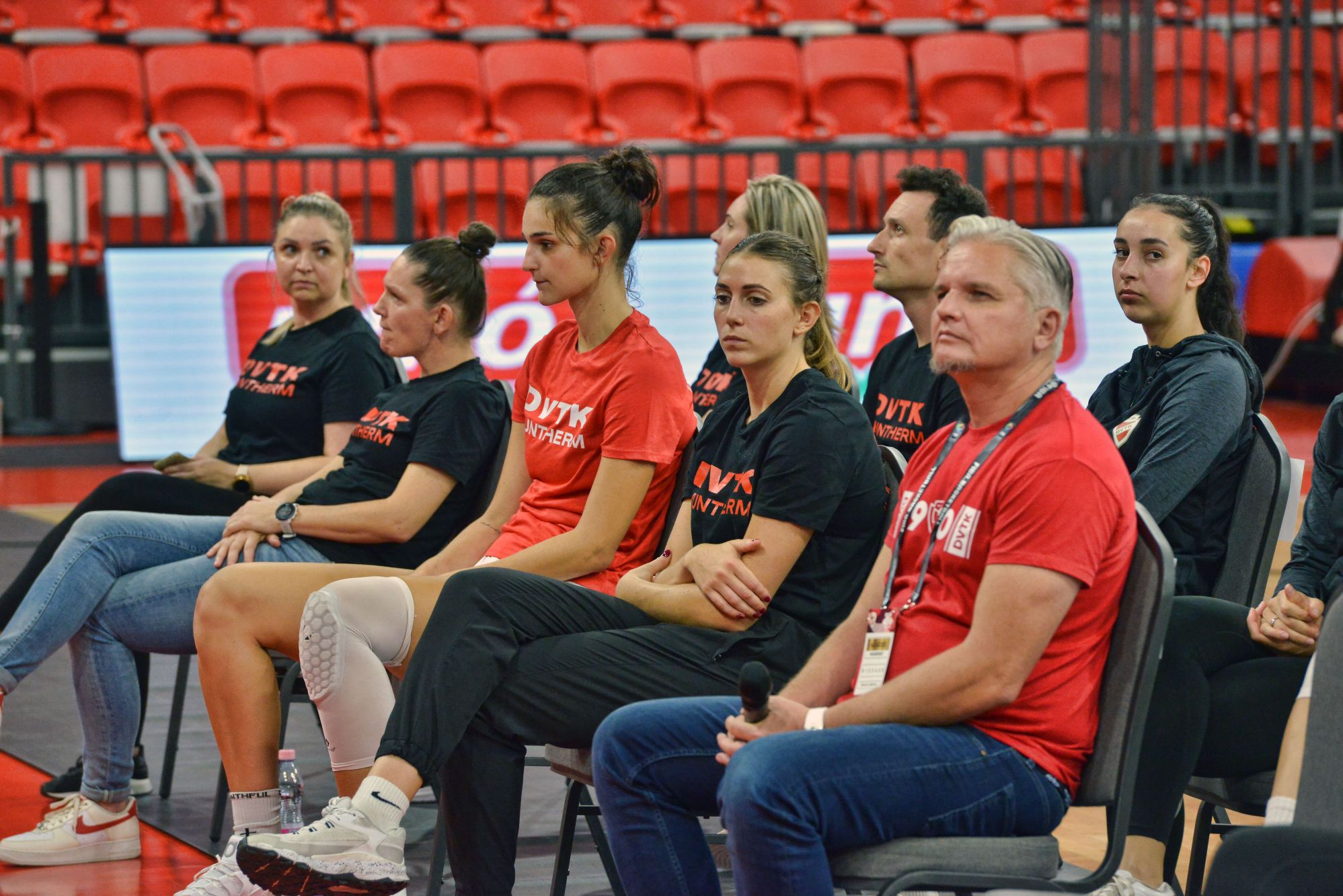 A játékosok közül elsőként Aho Nina ragadta magához a mikrofont. Ekkor derült ki, hogy a betegséggel bajlódó Kányási Veronika csapatkapitányt helyettesíti. Széles mosollyal fordult a publikumhoz: azt kérte, hogy legyenek ismét telt házas meccseik az arénában. Már feldolgozták, amit fel kellett dolgozniuk, és azt ígérte, hogy energiadús csapatjátékot produkálnak majd.