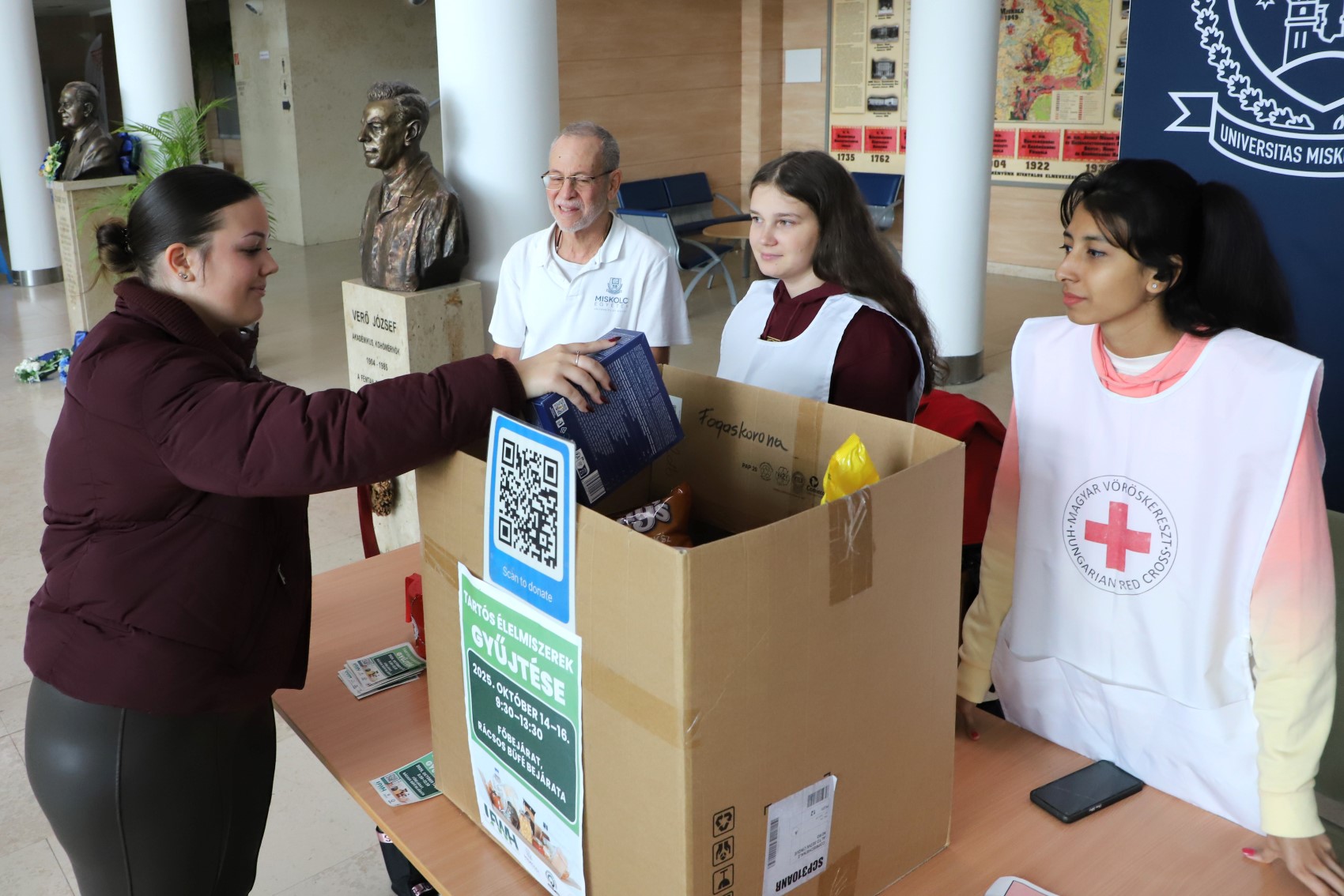 A campus és a Magyar Vöröskereszt Borsod-Abaúj-Zemplén vármegyei szervezete tizenharmadik alkalommal szervezte meg a tartósélelmiszer-gyűjtést az egyetemen októberben. Idén egy QR-kód is segítette az adománygyűjtést azok számára, akik nem egy szatyorban hozták a segítséget, hanem pénzzel járultak hozzá a beszerzéshez.