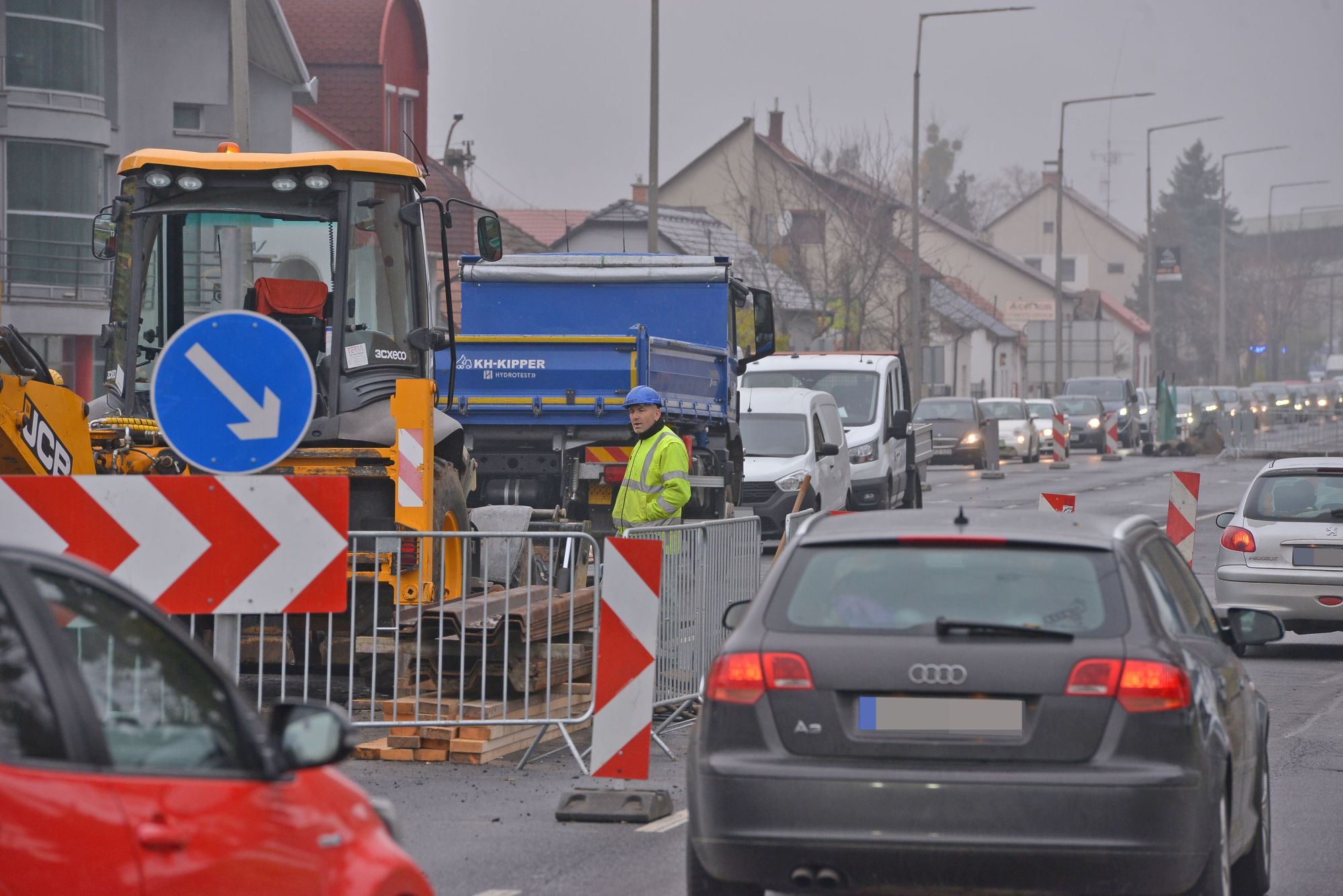 Még tart az ivóvízvezeték cseréje az Erdős-soron, a rekonstrukció ideje alatt félpályás útlezárás van érvényben.