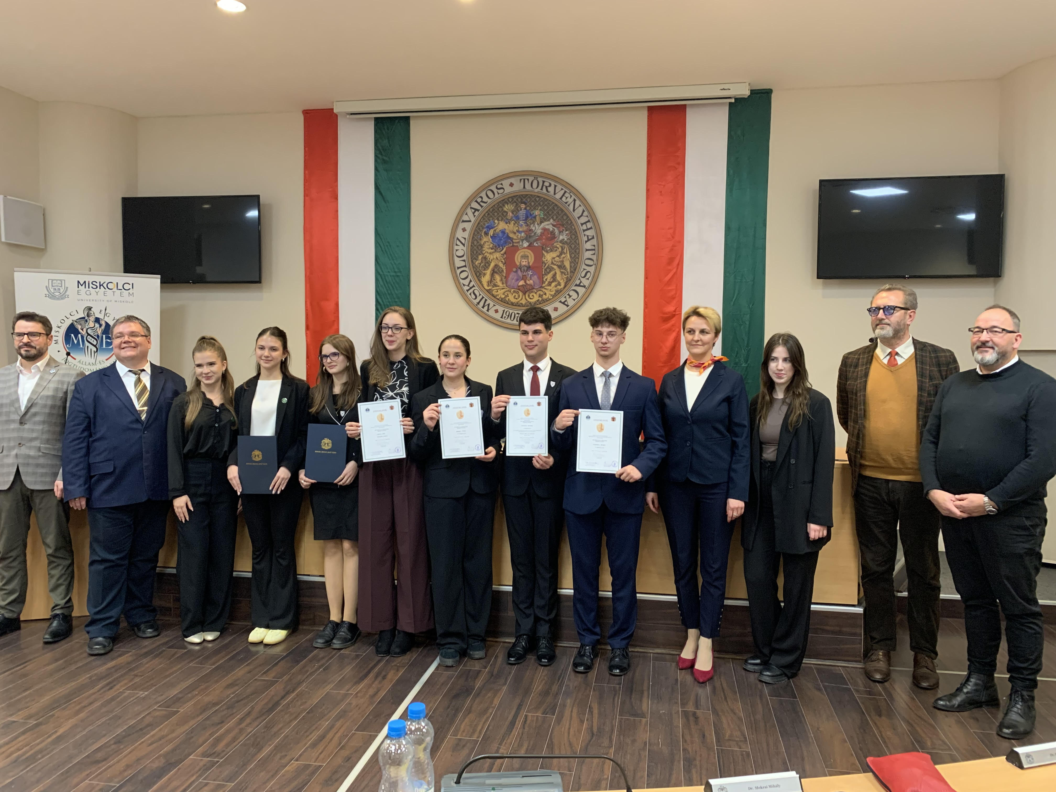 A megmérettetés győztese elnyerte a Miskolc Város Ifjú Szónoka címet. A helyezettek és a résztvevők, amennyiben a Miskolci Egyetem Állam- és Jogtudományi Karán folytatják tanulmányaikat, több egyetemi kedvezményben részesülhetnek.