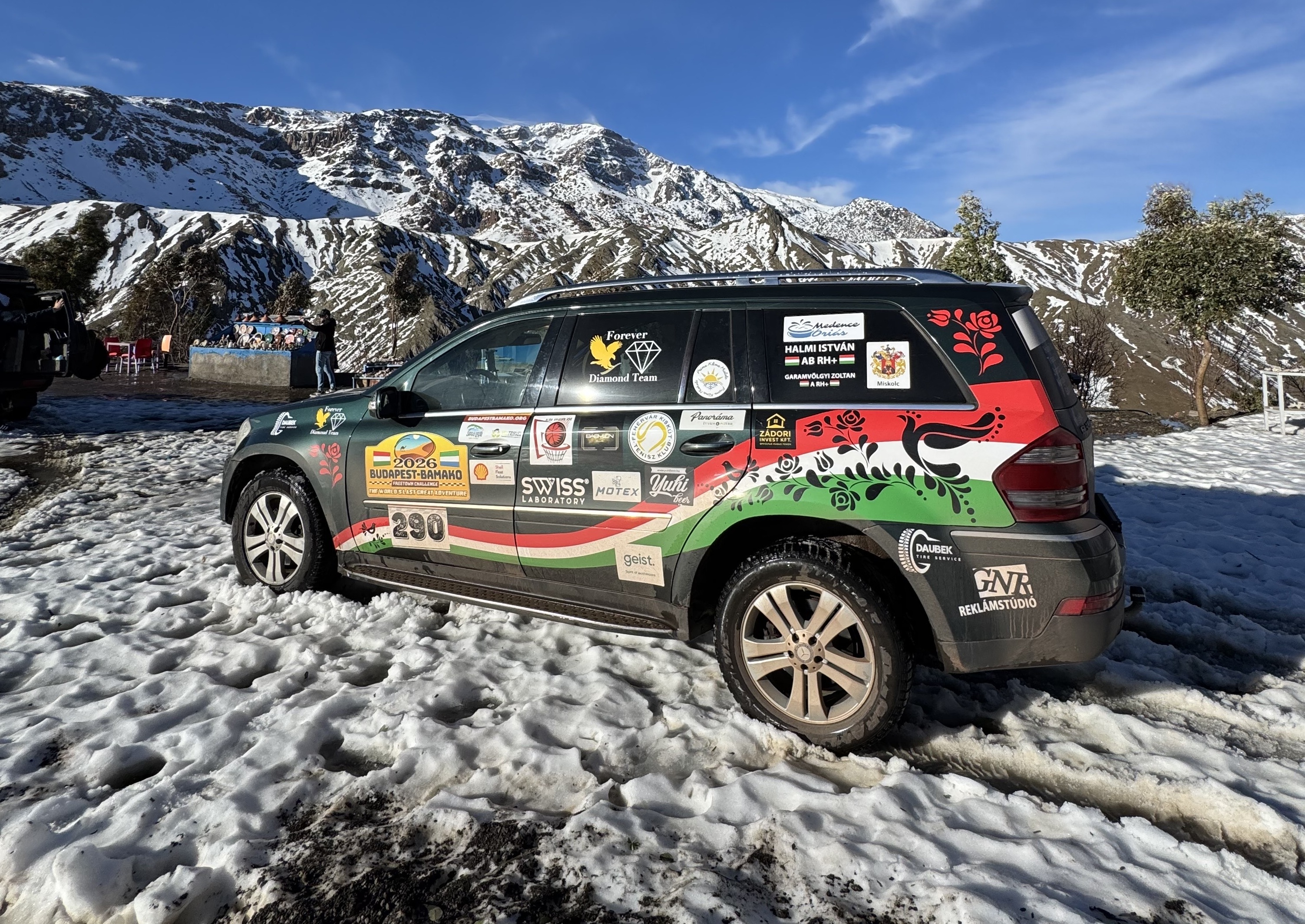 Az út a hegyekben szinte filmszerű képet festett: óriási hófalak, sárlavinák, sziklahordalék borította utak, miközben a háttérben havas hegycsúcsok magasodtak. Az afrikai tél ritkán mutatja meg ilyen arcát, most azonban a természet nem fogta vissza magát. Csapatunk lépésről lépésre, kitartással és higgadtsággal haladt előre, míg az est leszálltával végre megérkeztünk a sivatagban fekvő nomád táborhelyre.