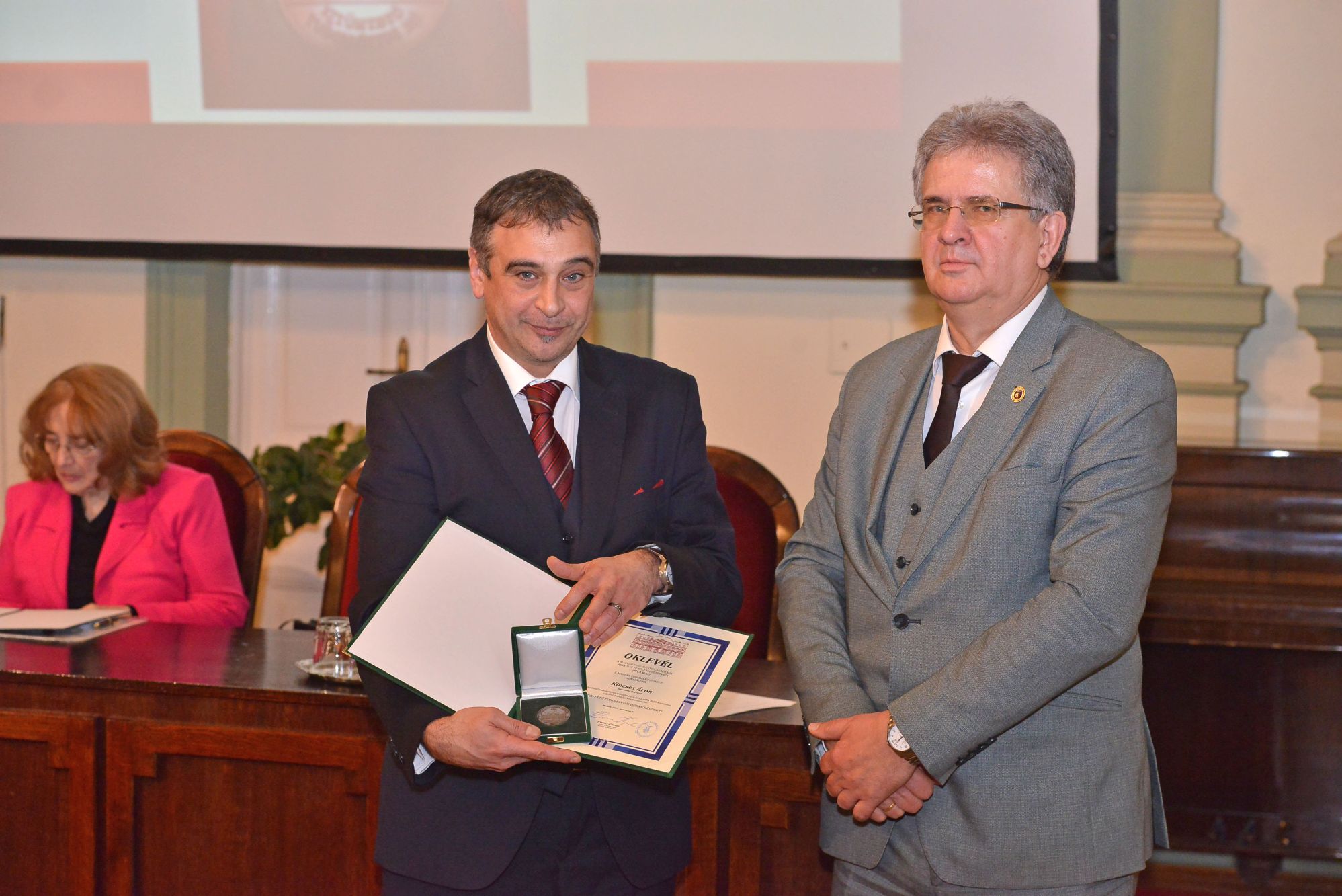 A díjat Kocsi Károly (jobbra), az MTA MAB elnöke adta át Dr. Kincses Áronnak (balra). Fotó: Osztie Tibor