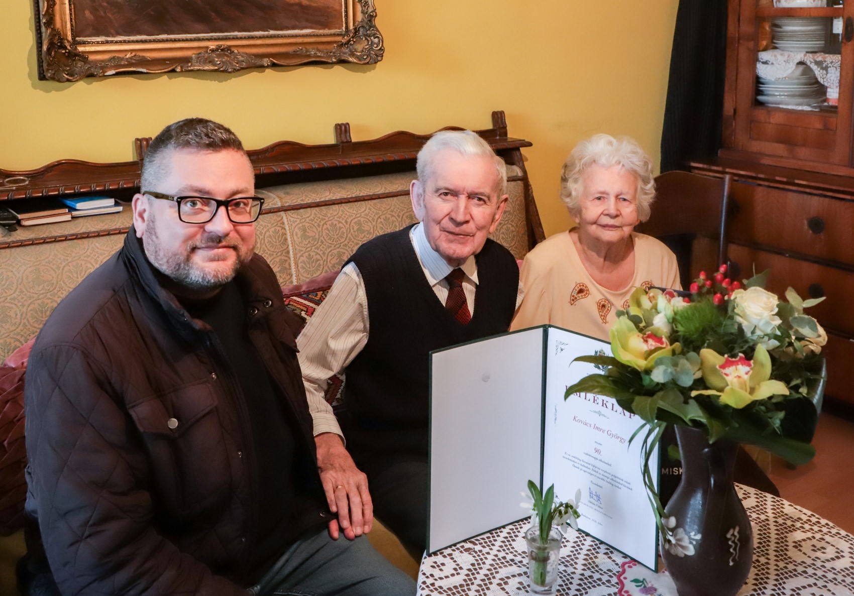 Virággal, ajándékkal és egy Orbán Viktor miniszterelnök által aláírt köszöntő levéllel látogatta meg a 90 éves Kovács Imre Györgyöt Bajusz Gábor önkormányzati képviselő és Szomorné Takács Tünde, a polgármesteri hivatal Lakosságszolgálati Főosztályának csoportvezetője pénteken Király utcai lakásában.