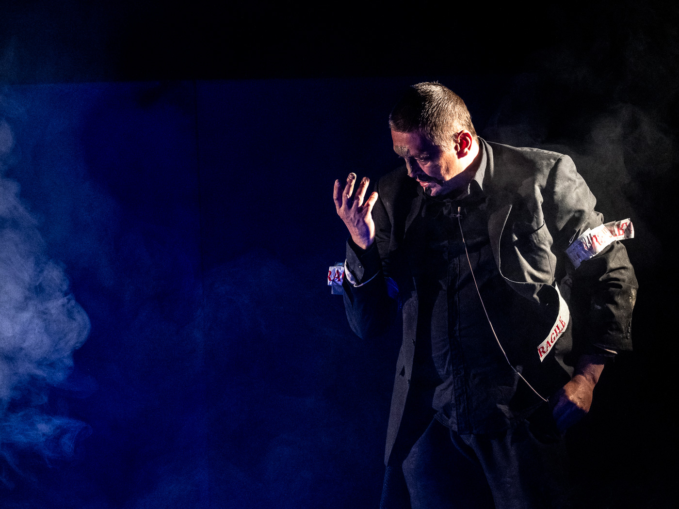 – Ez egy nagyon expresszív és látványos része az előadásnak. A figura pályája szépen indul, híres lesz, aztán fokozatosan elveszíti a kontrollt, és teljesen szétesik. Ezt próbáltuk meg valahogy színpadra vinni – árulta el a funkciójáról.