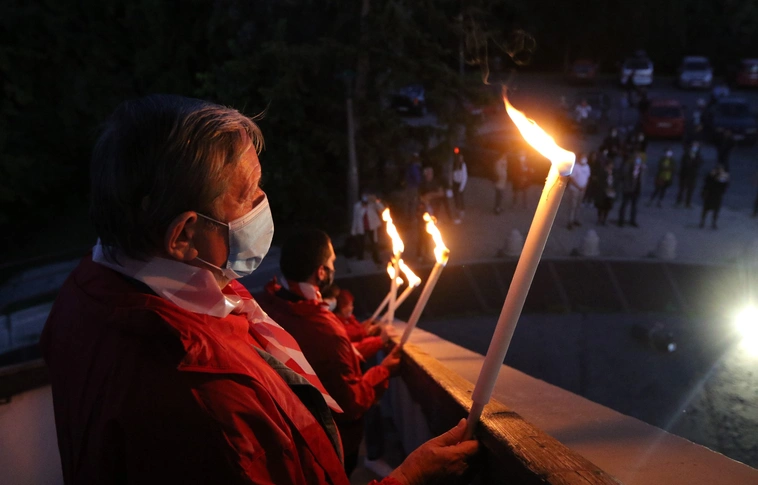 A Színház- és Filmművészeti Egyetem (SZFE) hallgatóival és oktatóival szolidaritást vállalva, fáklyás demonstrációt tartottak vasárnap kora este az Avasi Kilátónál.