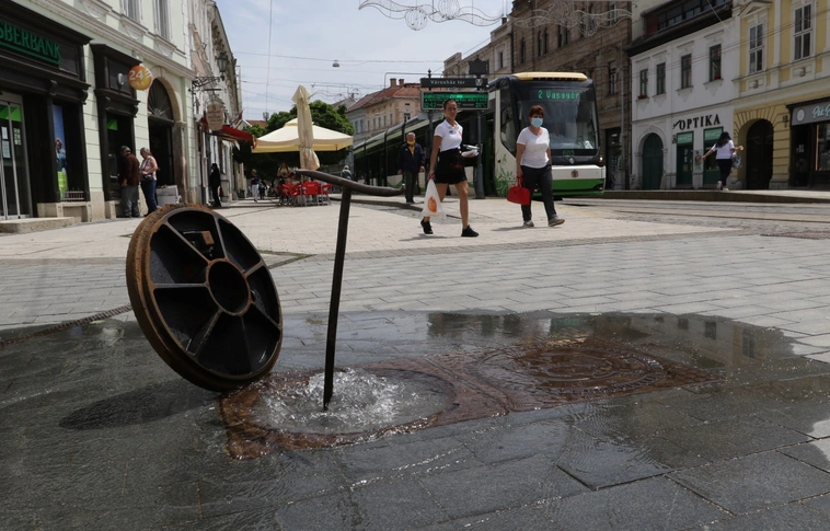 Aknából bugyogott fel a víz a belvárosban