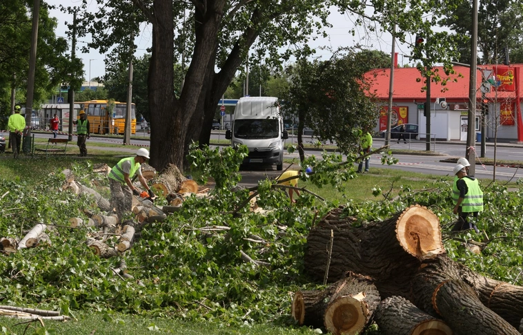 Hat, veszélyessé vált nyárfát vágtak ki szerdán a Testvérvárosok útján.