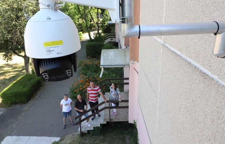 Térfigyelő kamerát helyeztek ki az Andrássy út 12. szám alatti társasházra szerda délelőtt.