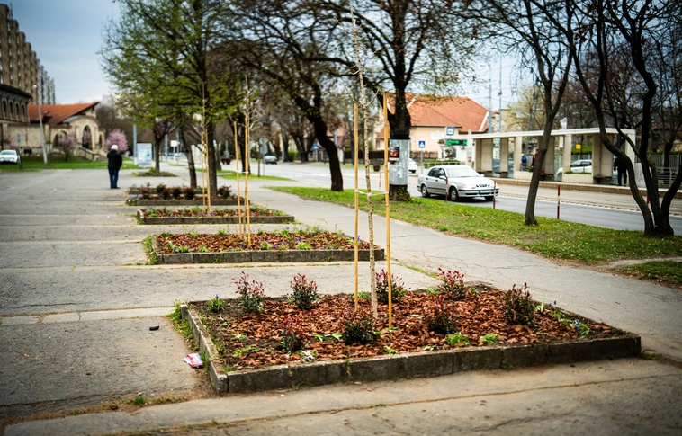 A Balázs Győző téren egészítették ki a fasort új csemetékkel és ültették be virágokkal.