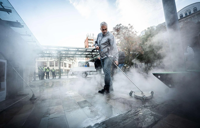 Az őszi nagytakarítás csütörtökön a Szinva teraszon kezdődött, és a következő két héten át a város legtöbb frekventált közterületét hasonló módon teszik rendbe.