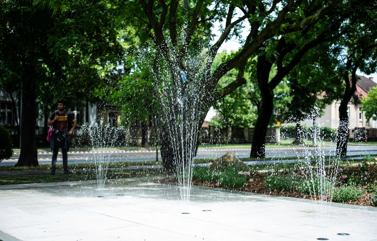 A frekventált helyen található tér már nagyon régóta elhanyagolt volt. Mostanra kicserélték a burkolatot, de új szökőkutat és virágágyást is kapott a terület.