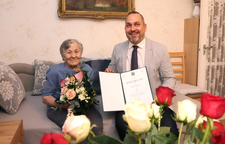 A diósgyőri születésű Kozák Miklósnét kilencvenedik születésnapja alkalmából a város nevében Szopkó Tibor alpolgármester köszöntötte fel egy nagy csokor virággal és az Orbán Viktor miniszterelnök által aláírt emléklappal.