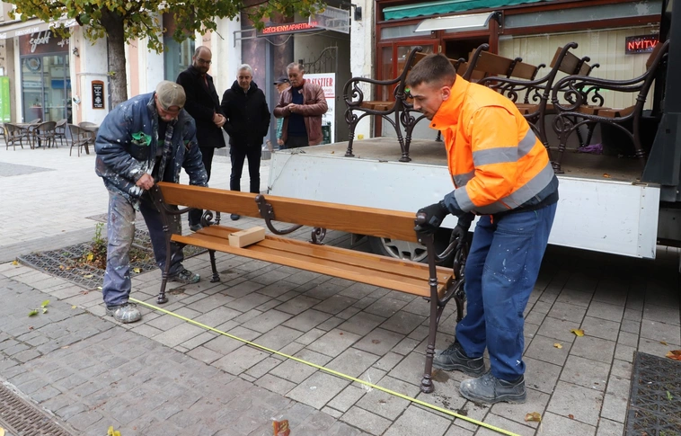 Megkezdték az új padok, szemetesek és biciklitárolók kihelyezését a főutcán