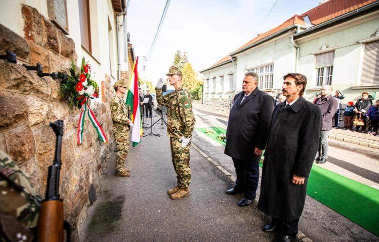 Megemlékező koszorúzást tartottak Oláh Miklós '56-os mártír Tárkányi utcai emléktáblájánál a nemzeti gyásznap alkalmából.
