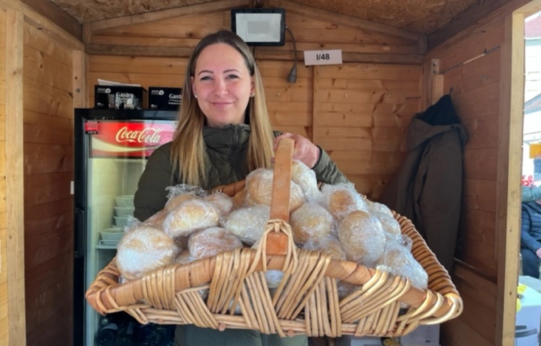 Mintegy hatszáz bucit adományozott a Miskolci Lions Klub felkérésére a kocsonyafesztiválra Galamb Alex, a Hernádnémetiben élő roma pék, a Sütni jó! Alapítvány elnöke jótékonysági célból.