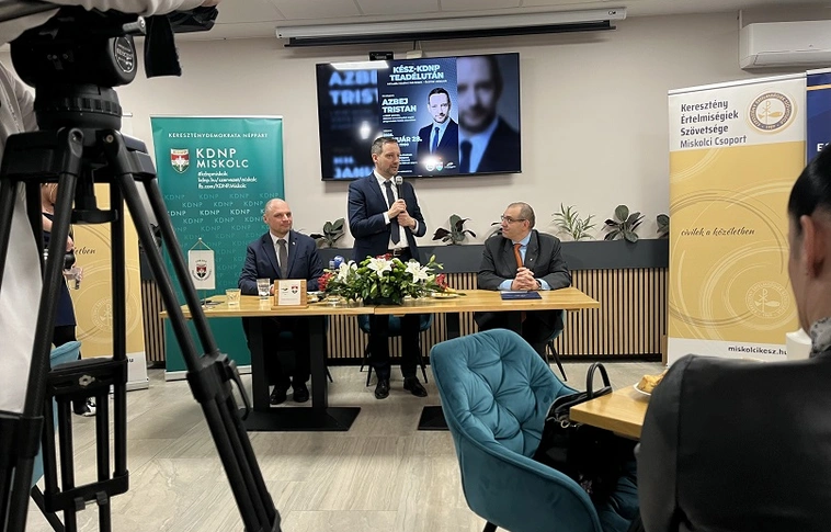 Azbej Tristan, az üldözött keresztényeket segítő programokért felelős államtitkár volt a vendége annak a teadélutánnak, amit a Keresztény Értelmiségiek Szövetsége és a KDNP tartott szerda délután a Miskolci Gasztro Centrum Ágazati Képzőközpontban.