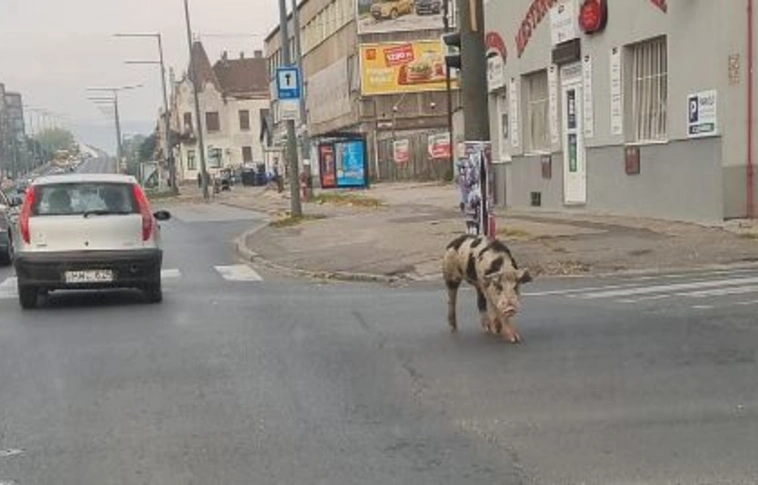 Kóbor sertés kolbászol Miskolc útjain