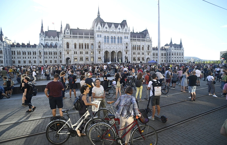 Több ezren gyűltek össze az Országház előtti Kossuth téren szerdán este 6 órakor, hogy a kedden elfogadott új katatörvény ellen tüntessenek. A tömeg később a Nyugati térhez ment és ott leállította a forgalmat, majd elindult a villamossíneken gyalogolva az Oktogonhoz, és a Fidesz Lendvay utcai székházához.