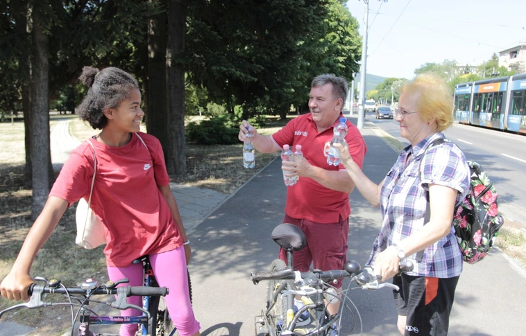 Több mint harminc liter ásványvizet osztott ki a Kilián-déli villamosmegállóban Bartha György önkormányzati képviselő péntek délelőtt. Mint mondta, célja az volt, hogy segítsen a járókelőknek a napi folyadékptlásra ebben a rekkenő hőségben.