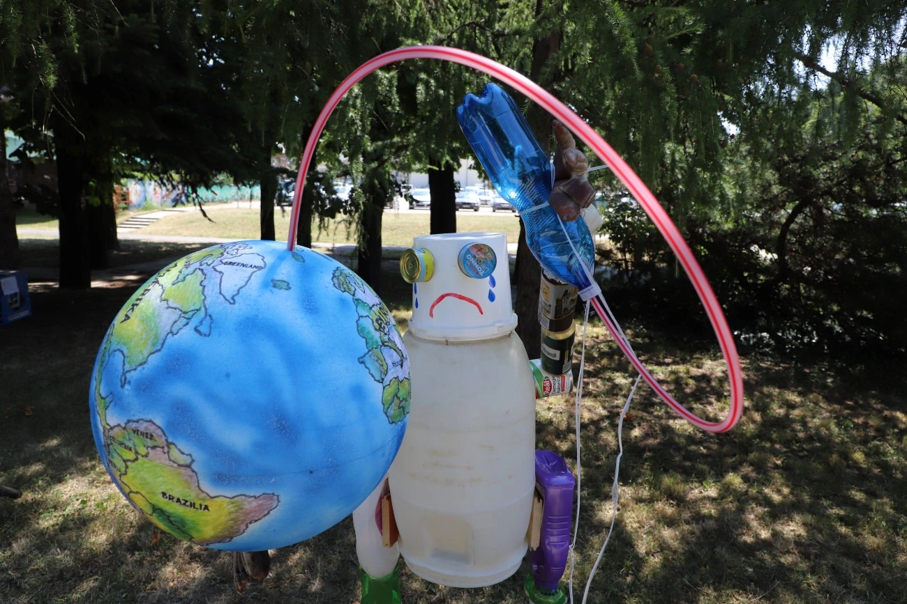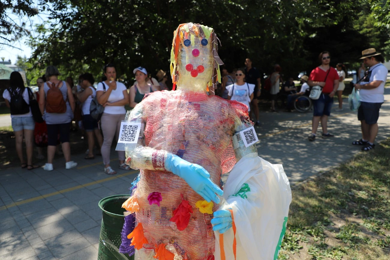 A kiállított installációk, újrahasznosított hulladékok mellett közös alkotói munkába is belevághattunk a kitelepült oktatókkal, diákokkal, akik azt szeretnék elérni, hogy átalakuljon az emberek gondolkodása a szemétről és az újrahasznosításról.