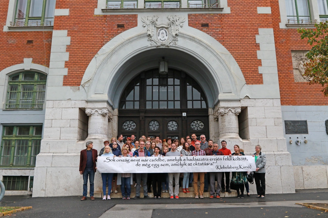 A tantestület közel fele szüntette be a munkát pénteken két órára a miskolci gimnáziumban, jelezve: komoly változtatásokra van szükség a magyar oktatásban.