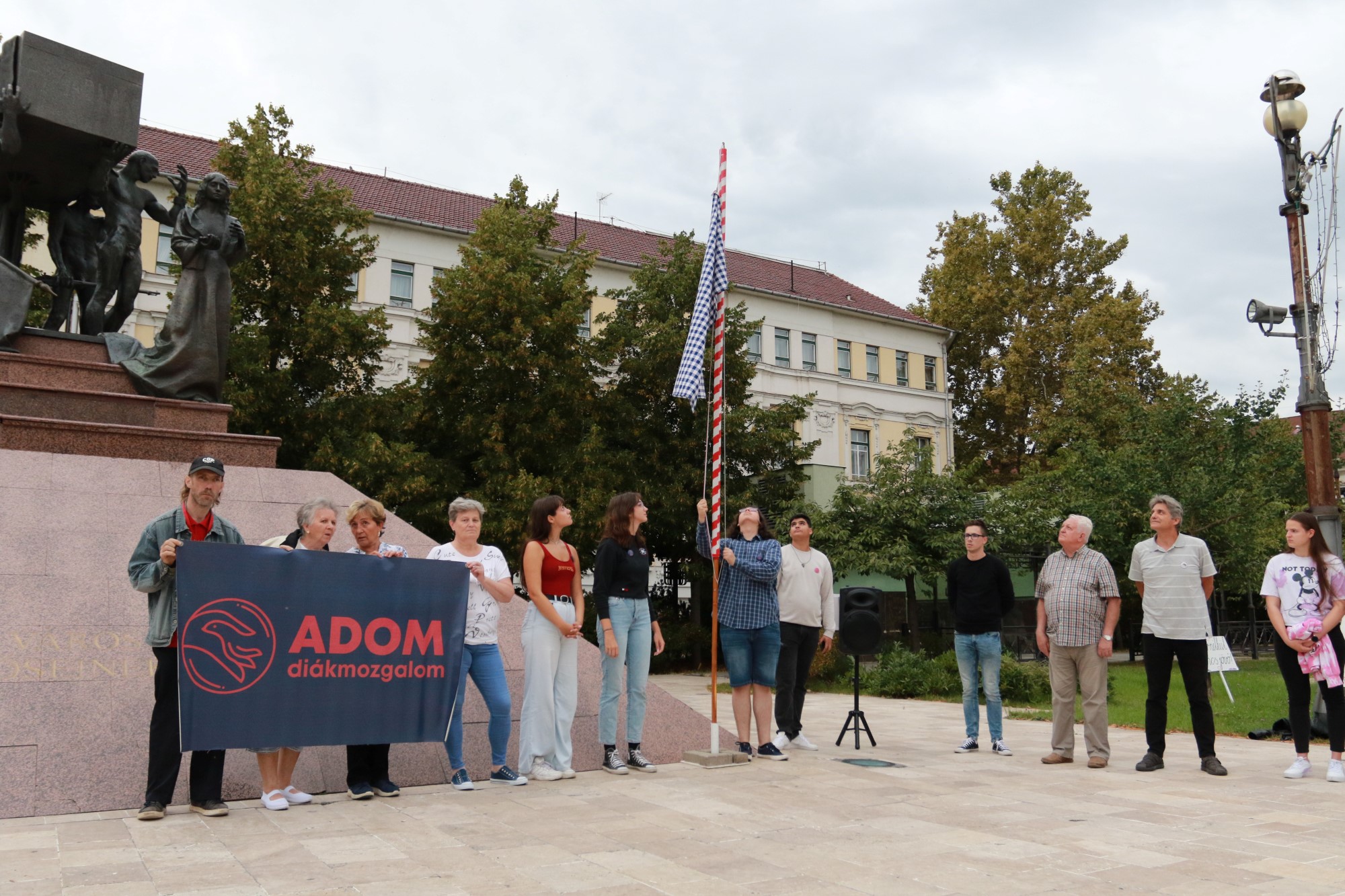 A rövid beszédeket követően 18:48-kor - ahogy a szervezők hívták: a "szabadság percében" -egy kockás zászlót vontak fel a Hősök terén.