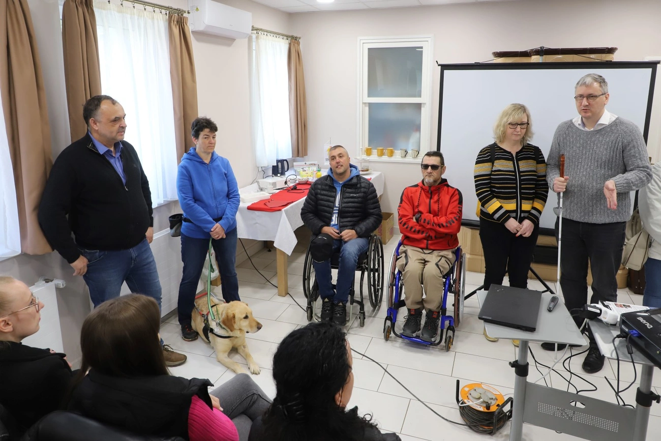 – Az érzékenyítő nap arról szól – mondta Jakubinyi László, a Szimbiózis Alapítvány kuratóriumi elnöke, hogy a különböző fogyatékosságokkal hogyan lehet együtt élni, hogyan lehet megszólítani ezeket a személyeket, melyek azok az apró trükkök, technikák, amelyeket el lehet sajátítani ahhoz, hogy a velük történő kommunikáció és szituációkezelés hatékony legyen.