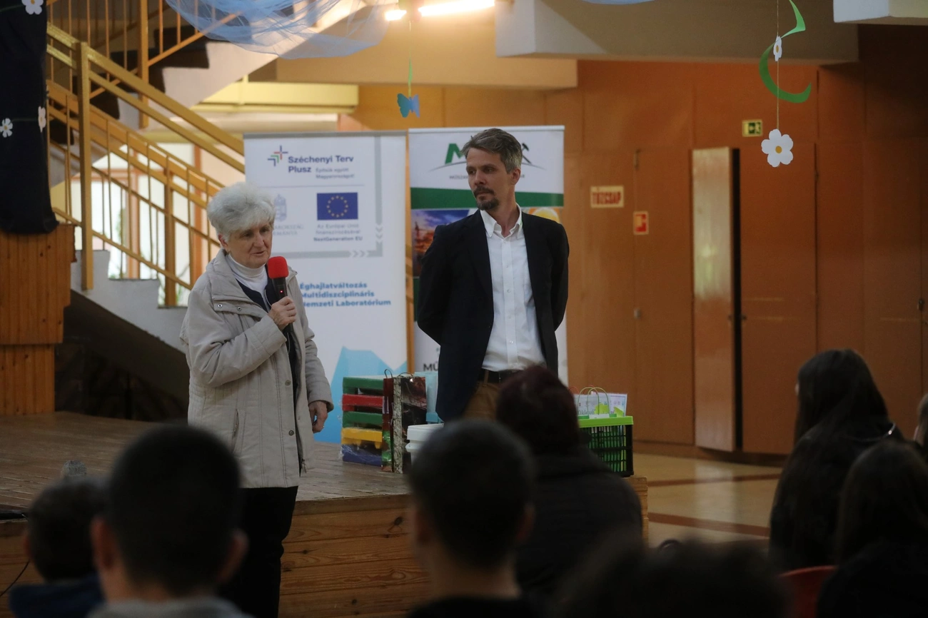 Hozzátette, a mai nap apropója az is, hogy a partnereikkel közösen megvalósítsanak egy projektet, amely az általános iskolától, a középiskolán át az egyetemig megszólítja a fiatalokat és igyekszik velük megszerettetni a természettudományokat. Éppen ezért az egyik legfontosabb programpont a Miskolci Egyetem Műszaki Föld- és Környezettudományi Kara egyetemi docensének, Szalontai Lajosnak az előadása volt, aki nem egyszerűen a földről, a környezetünkről adott át érdekes információkat a hallgatóságnak, hanem kifejezetten fókuszált Komlóstetőre és közvetlen környékének földrajzi, éghajlati adottságaira.