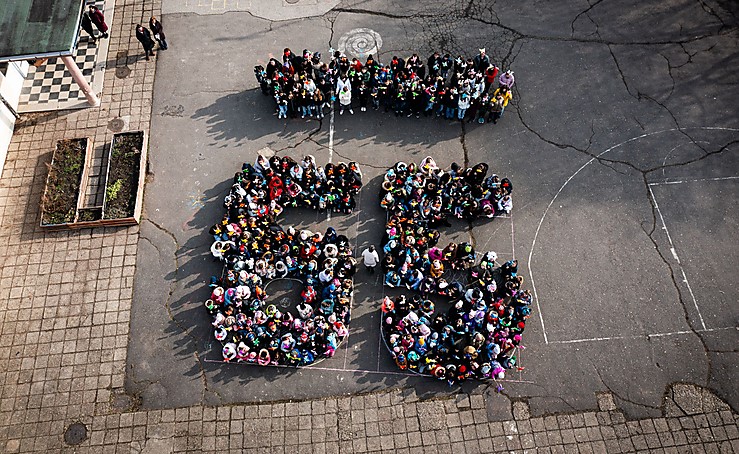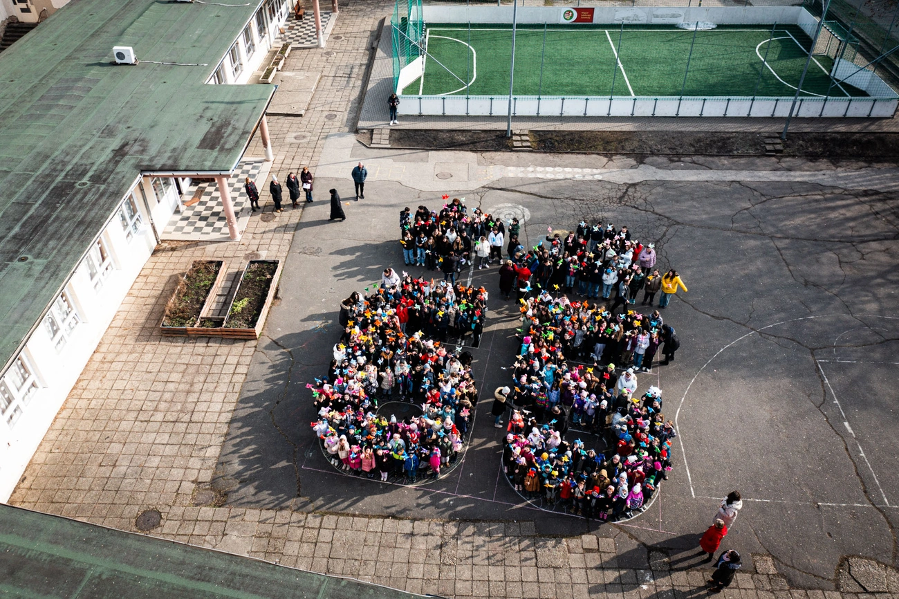 Az eseményen Horváth Csongor fotóriporter kollégánk, mint az iskola öregdiákja, drónnal készített felvételeket. A drón a gyerekek körében osztatlan sikert aratott. A színpompás flashmob végeztével, sikongatva üldözték a fölöttük szálló, zümmögő repülő tárgyat.